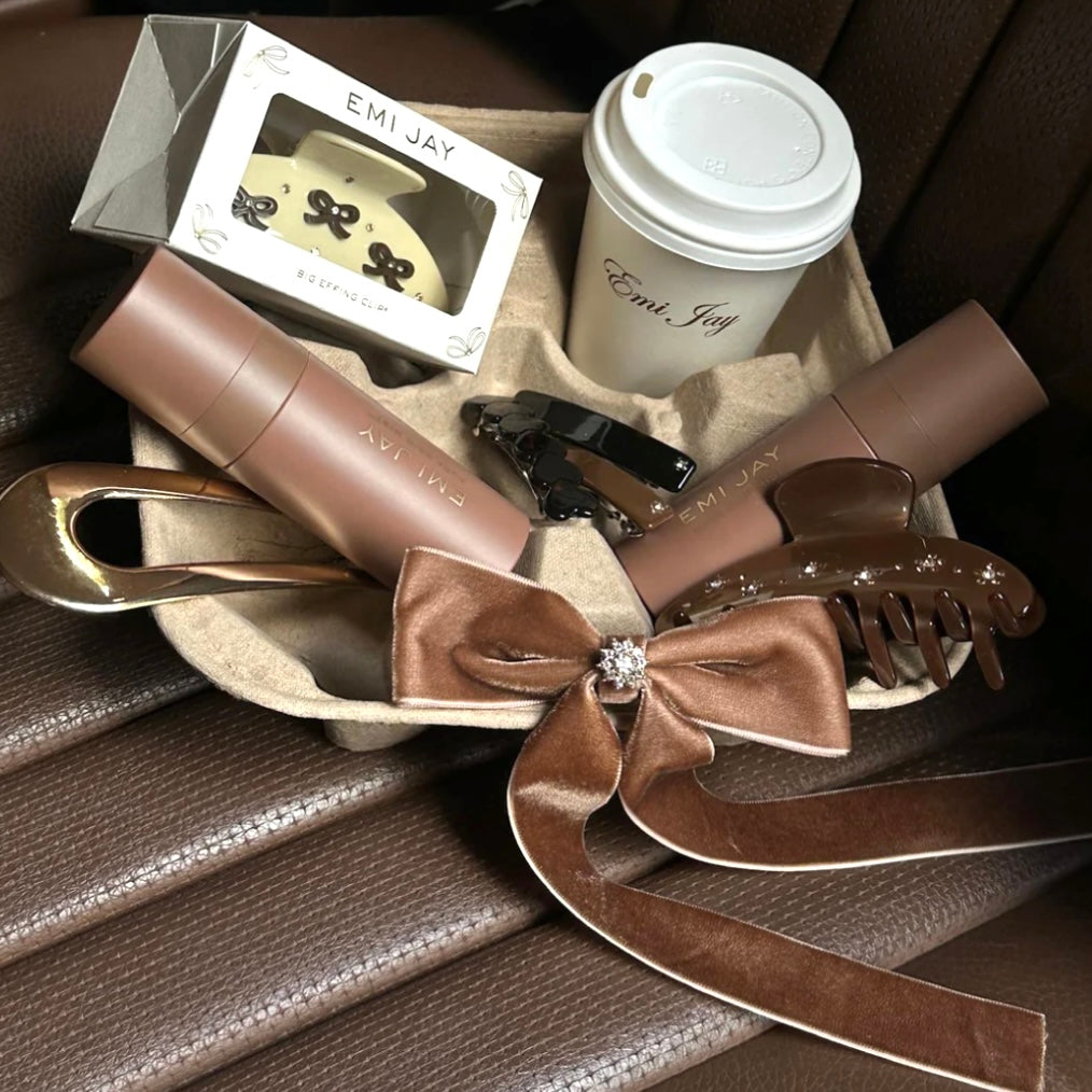 EMI JAY ICONIC VELVET BOW BARRETTE - Mocha Mousse