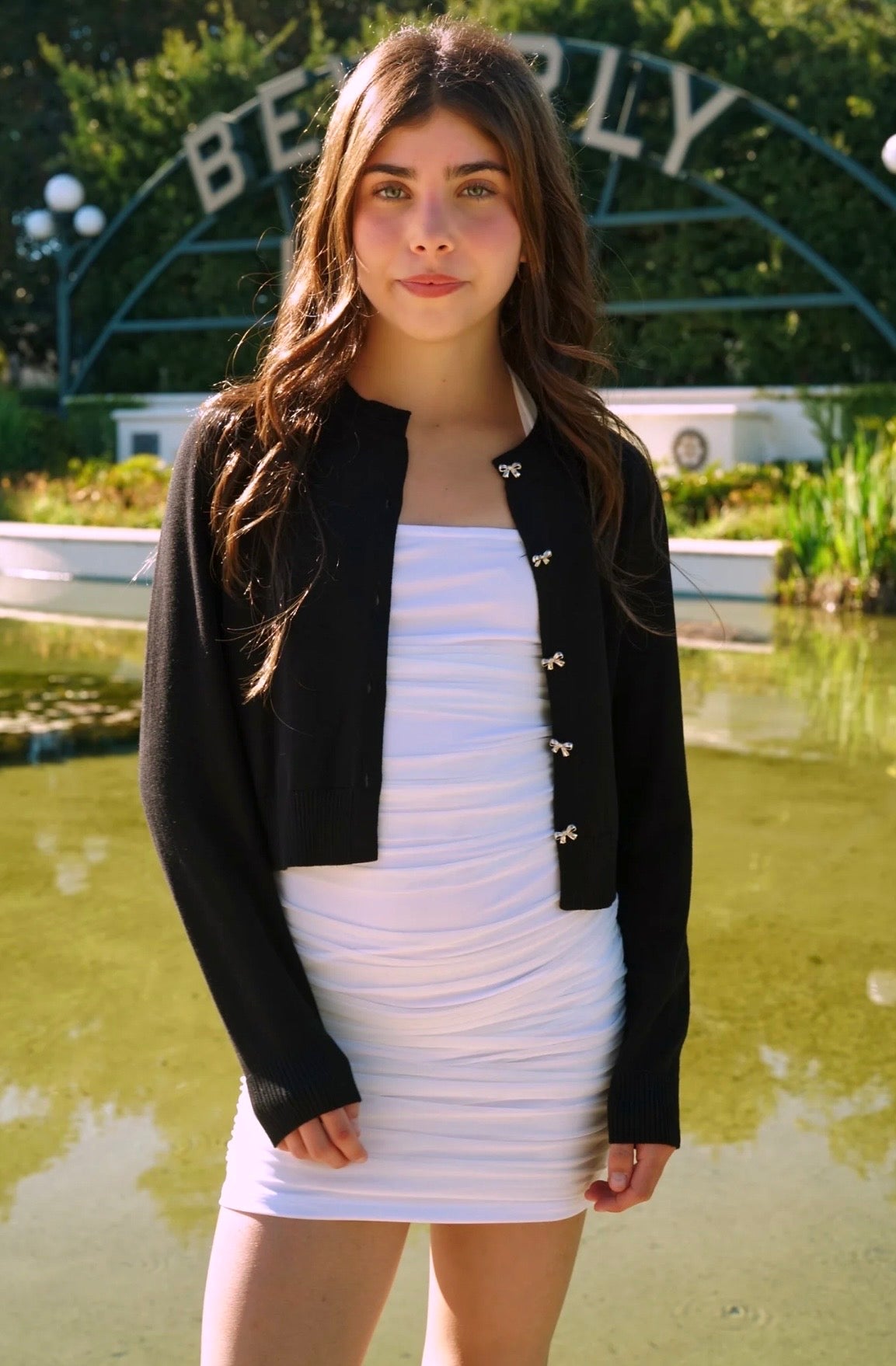 Layer up in adorable style with this charming Sylvie bow cardigan! Featuring classic design with precious bow buttons, it's the perfect piece for adding warmth and personality to any outfit. Soft and comfortable, it works beautifully over dresses, tees, or tanks for endless styling possibilities. Whether she's heading to school, a special event, or just hanging out, this cardigan brings playful elegance and timeless charm. A sweet favorite that's always ready to complete her look!