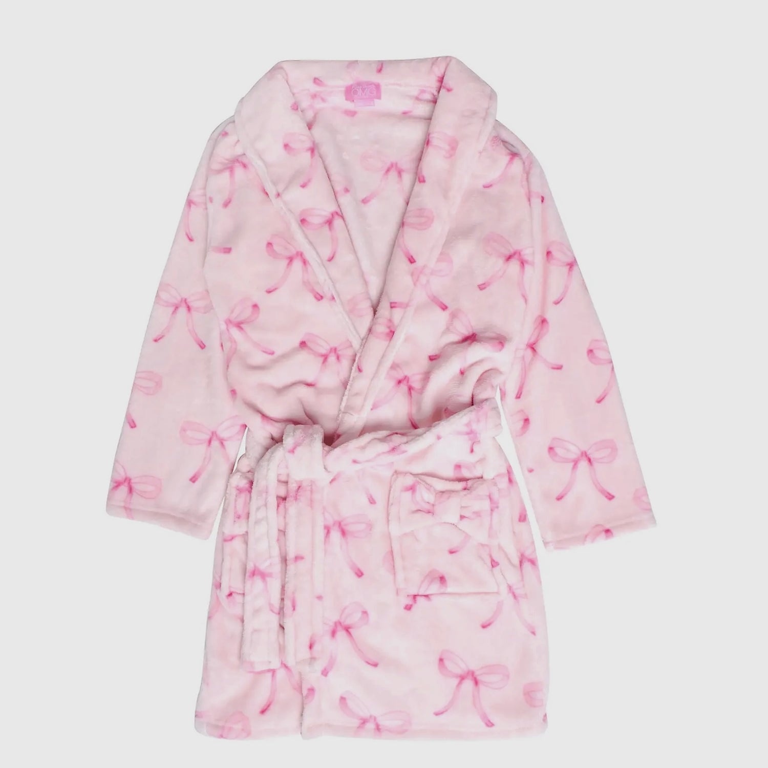 So plush and snuggly, they'll want to wear this NEW Pink Bows plush robe all day long! Detailed with a shawl collar, waist tie, and two plush bow front pockets - they'll be spa-ready at any moment!